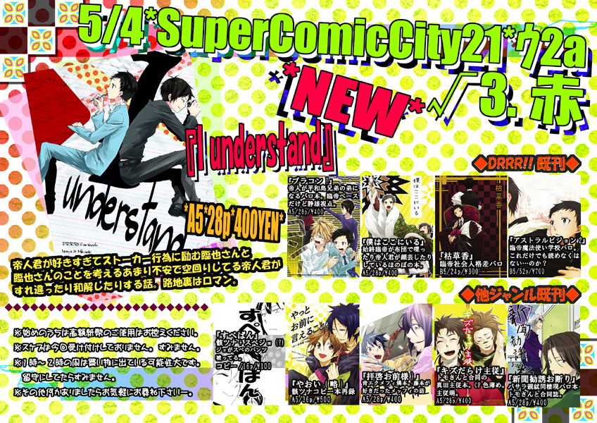 スパコミ新刊の「I understand」の委託納品が完了しました。
